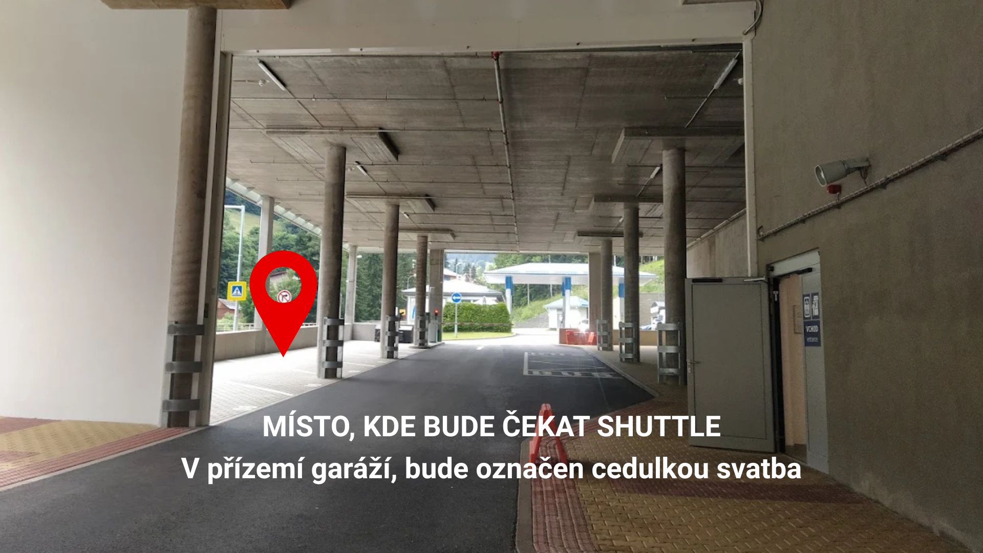 Zaparkujte prosím své auto na libovolné místo a po schodech se se všemi věcmi přesuňte do přízemí parkovacího domu. Místo bude označené cedulí SVATBA a vozy také.